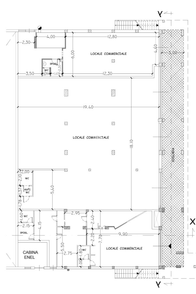 Locale commerciale attualmente composto di un unico ambiente con antibagno e servizio.